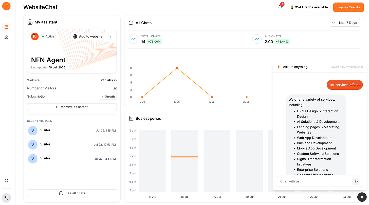 WebsiteChat make monitoring easy with clear charts and logs. Make it a habit to check your chatbot dashboard at least weekly. By staying on top of the data, you can ensure your AI assistant is continuously improving and delivering a great experience.