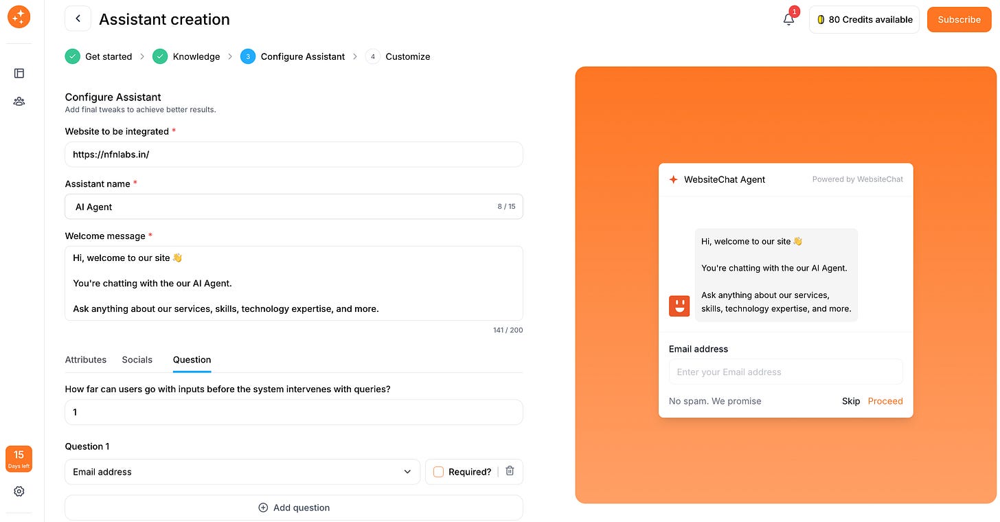 P.S. If you’d like to see a live demonstration of these steps, we’ve got you covered. Check out our video demo or write to us to schedule an onboarding call. Seeing it in action will reinforce just how easy it is to get your own AI chatbot up and running. Happy chatting!