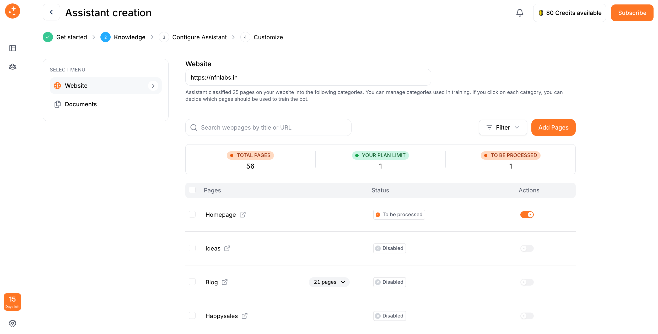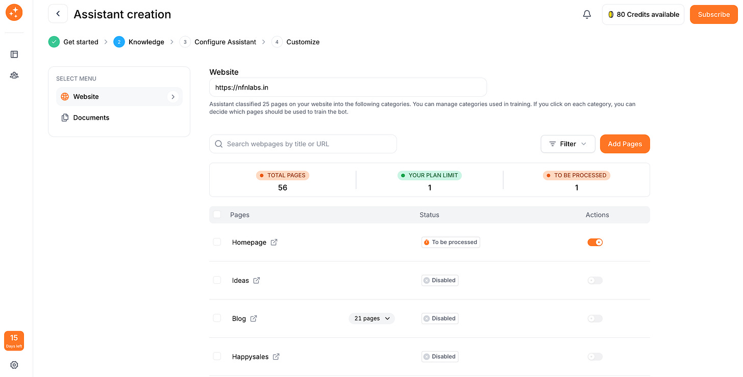 After you’ve added your content sources, the application will map out the information. You’ll often see a list of the pages or documents you provided. Take a moment to review this list and select or deselect specific pages if needed. For example, you might exclude irrelevant pages like your website’s terms of service if you don’t want the bot giving legal info. This ensures your bot stays focused on the right knowledge.