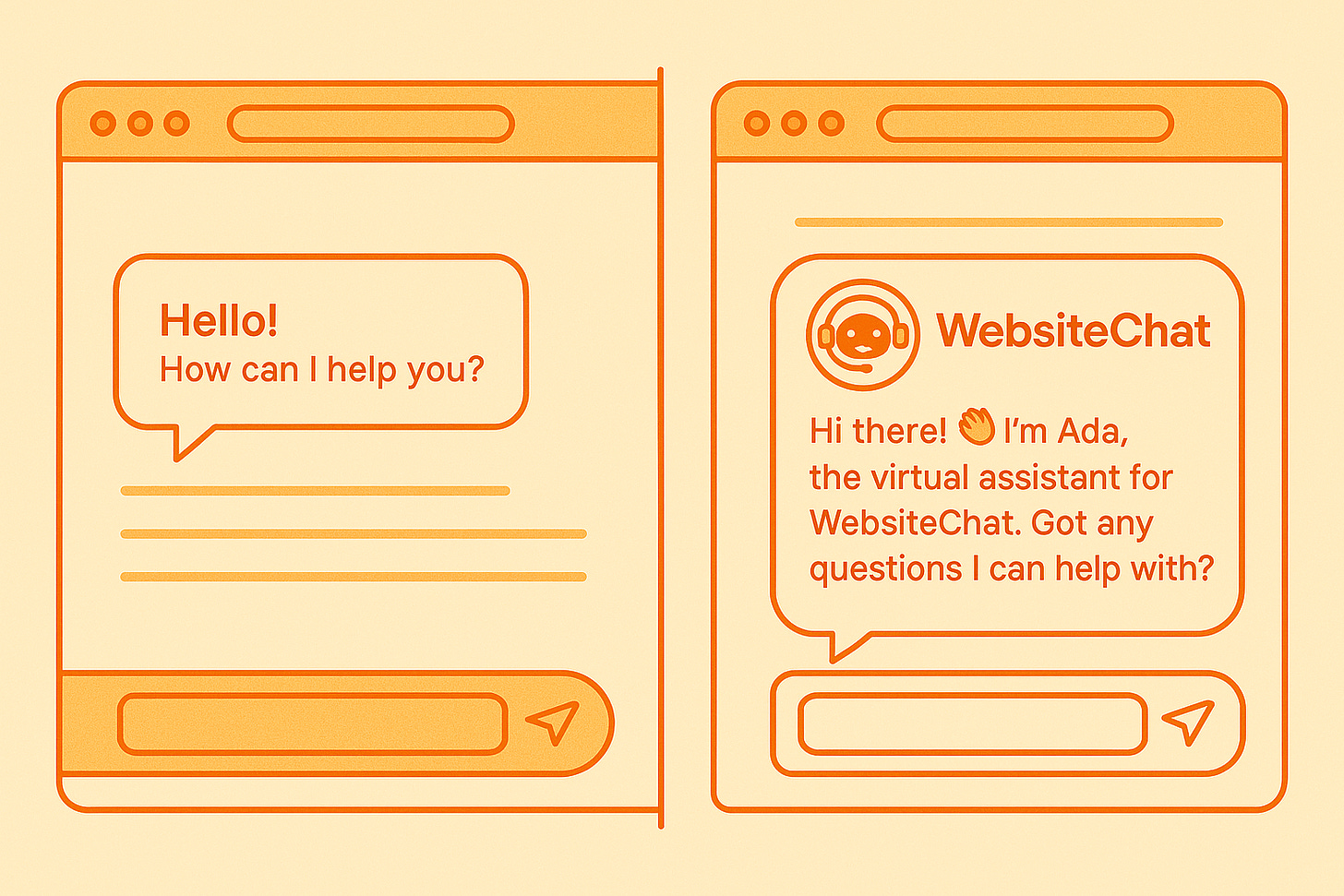 Don’t forget the welcome message: First impressions count, even for AI. Craft a warm, on-brand greeting message that the chatbot will display when it pops up. For example, instead of a generic “Hello, how can I help you?”, you could say “Hi there! 👋 I’m Ada, the virtual assistant for [Your Company]. Got any questions I can help with?” Make it friendly and in line with your brand’s voice. The welcome message sets the tone for the whole interaction, so a custom greeting can draw visitors in and make them feel at ease.